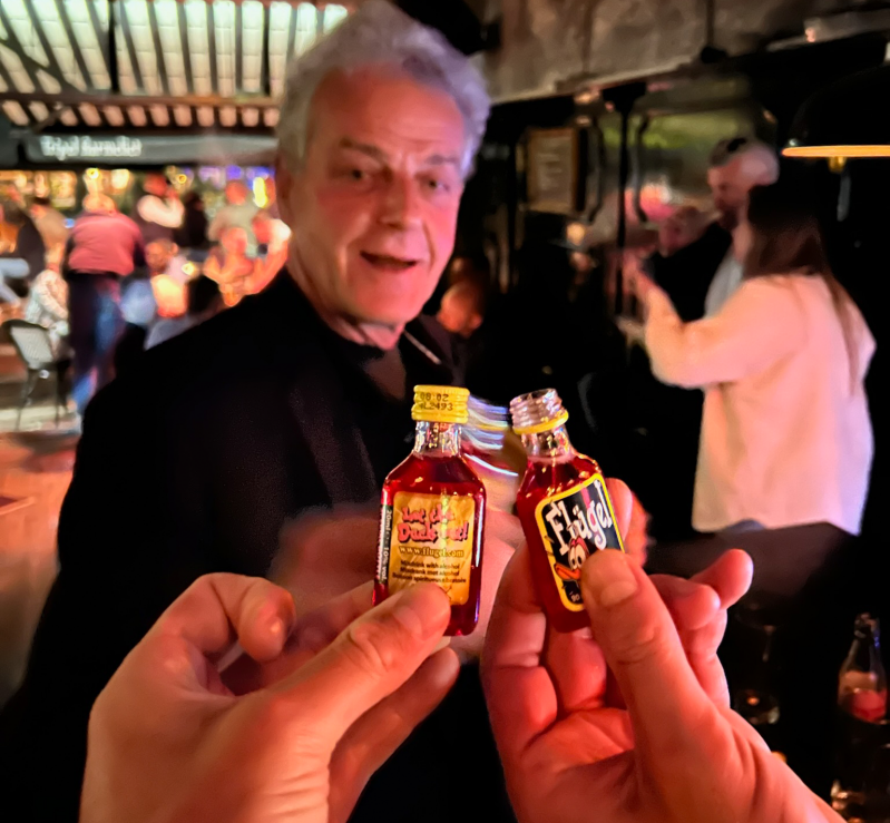 After a successful day on the course, we drove to downtown Assen, checked into the hotel, and freshened up. Once ready, we went in search of a place for dinner. Besides reminiscing about old times, with wine and finishing off with Irish coffee, my dad proudly told us that he was going to “smash it” the next day, and that he’d have one last drink with us at the bar before heading to bed. Let’s just say the photos speak for themselves—it was more than one drink, and Flugel is quite tasty, right, Dad?